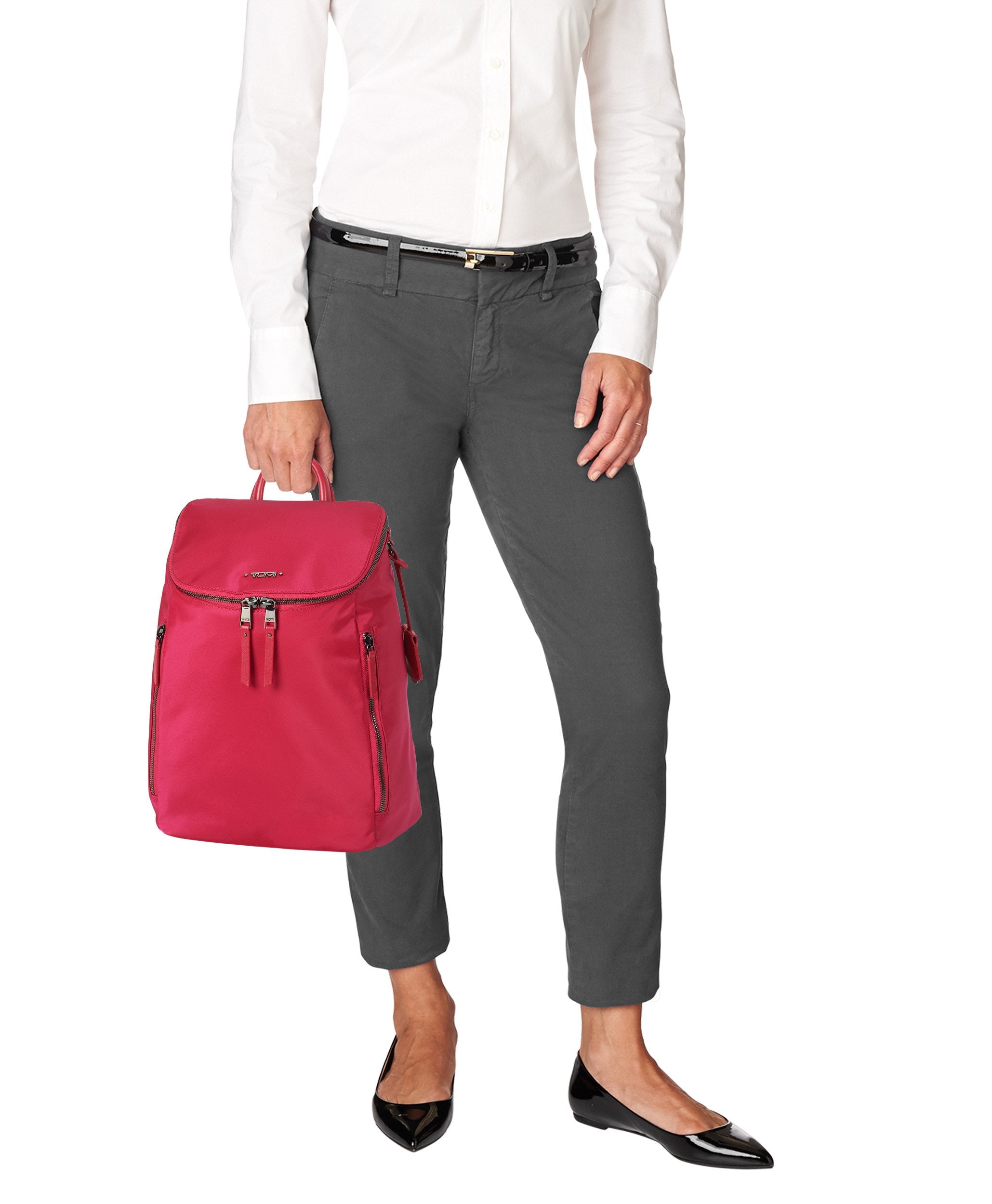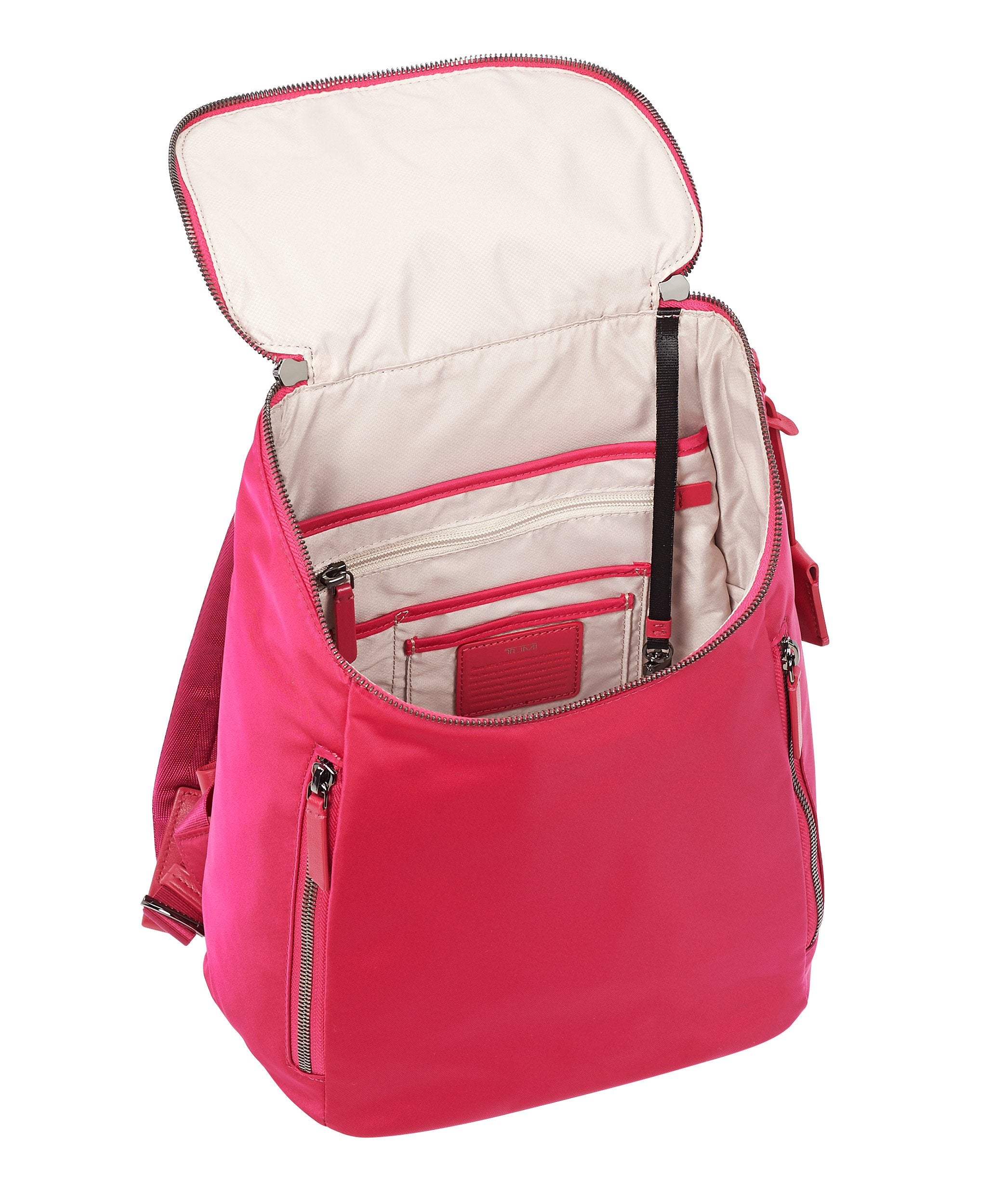 Clean, modern style thats designed to carry your everyday essentials, this backpack features a padded tablet pocket, as well as a multitude of other organizational pockets. Theres even a handy side zip to access the main compartment without openingthe top. Purposeful, practical design that doesnt compromise on style: Our Voyageur collection brings you versatile and lightweight nylon backpacks, bags, and accessories for women.