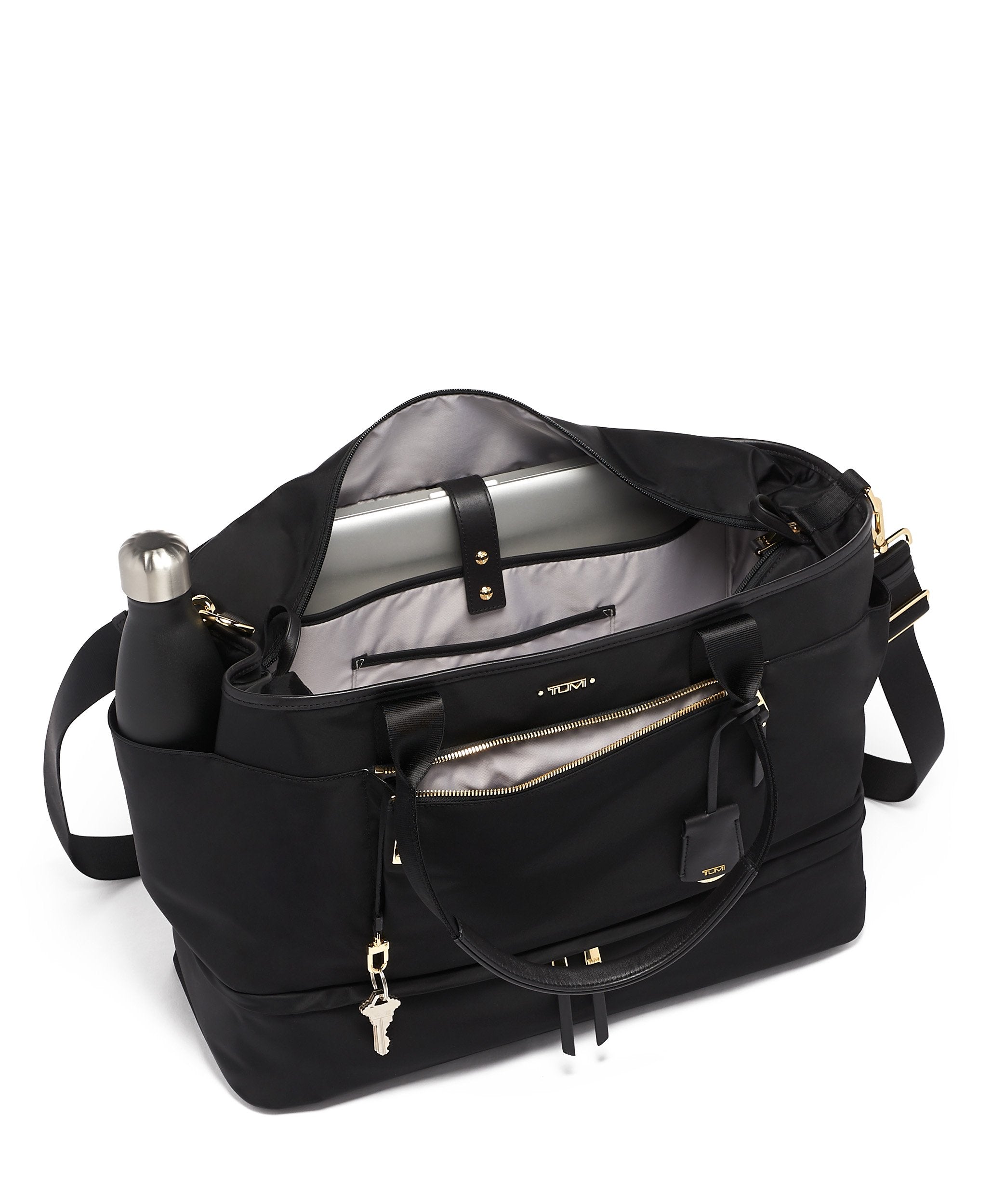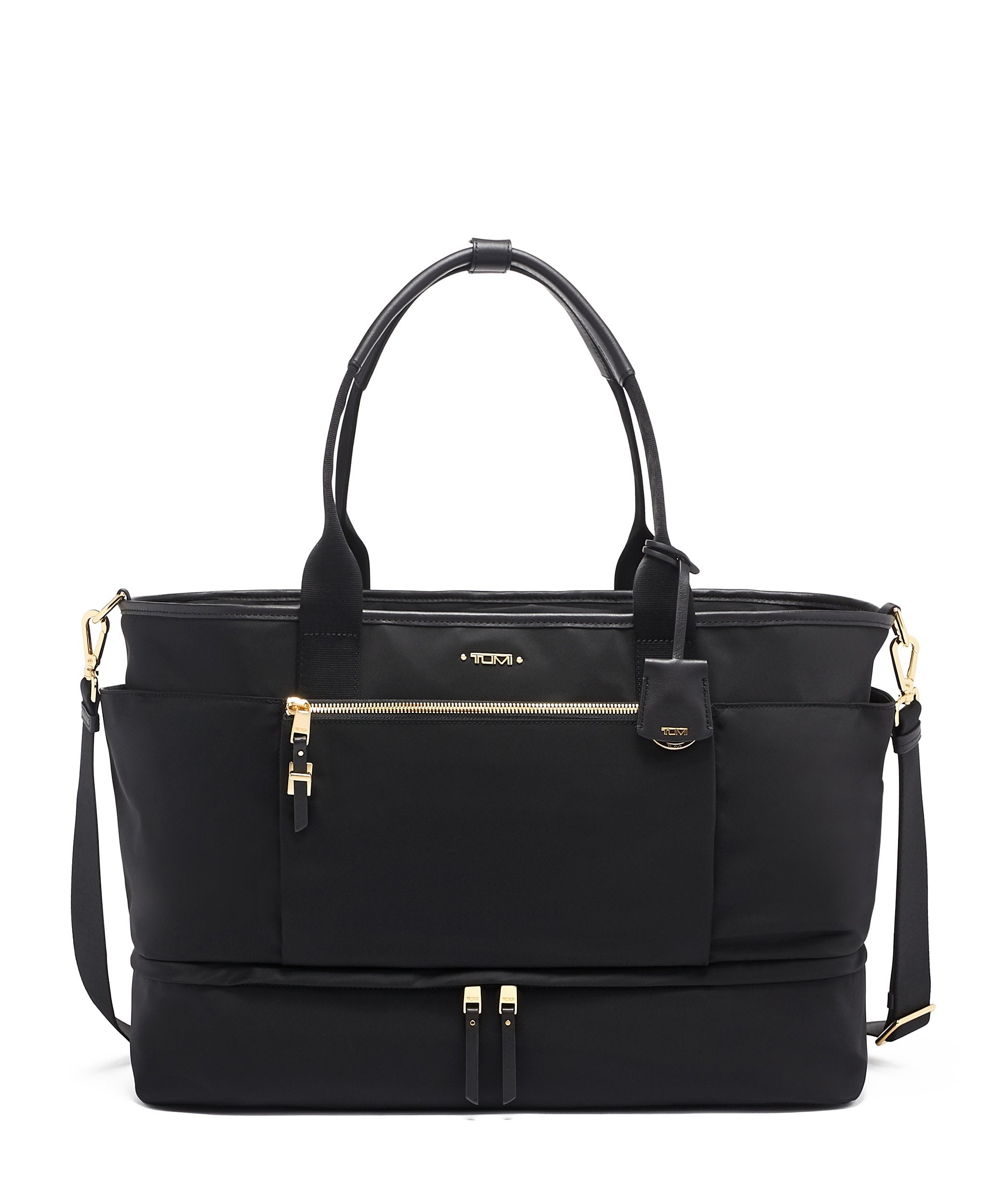 For work, weekend, day-to-day, or on the road, weve packed this roomy duffel with lots of ingenious features that make organization easy. With a quick zip of the interior, the roomy main compartment can be divided into two sections to separate, forexample, clean and dirty items, or clothing from shoes. There are also designated places for your laptop, water bottle, and smaller accessories. Purposeful, practical design that doesnt compromise on style: Our Voyageur collection brings youversatile and lightweight nylon backpacks, bags, and accessories for women.