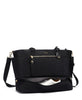 - Front zip pocket with locking zipper pull. 2 open pockets (one with water-resistant lining)