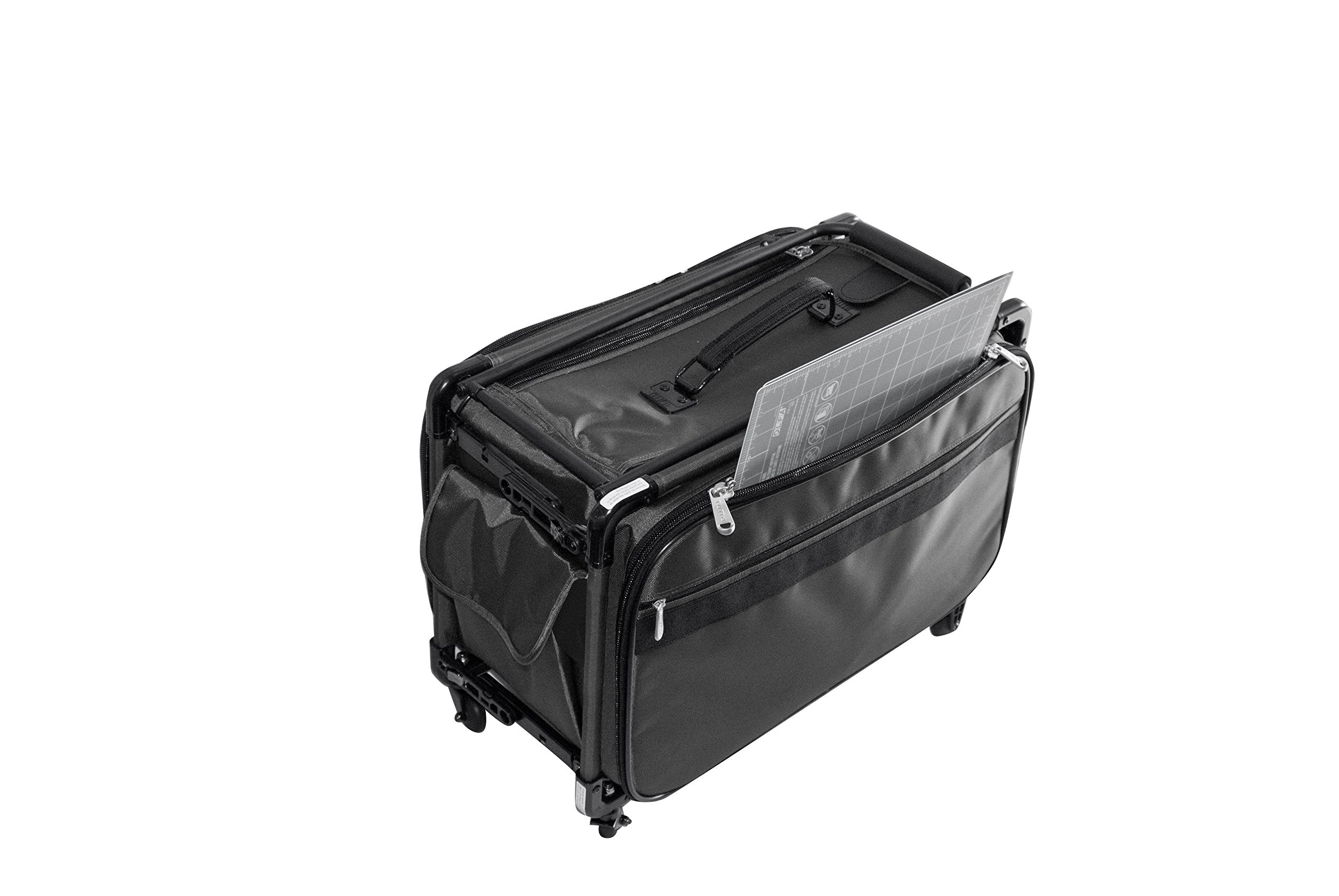 Award winning, medically endorsed case provides back-saving, lightweight transport of all sewing supplies. Top-Side-opening easy access, stable 4-wheel base, two inside straps to secure your machine, collapses to 3 for easy storage and stacks up to 100lbs.This machine case fits most airplan overhead bin(Domestic USA only, might not meet international regulation).