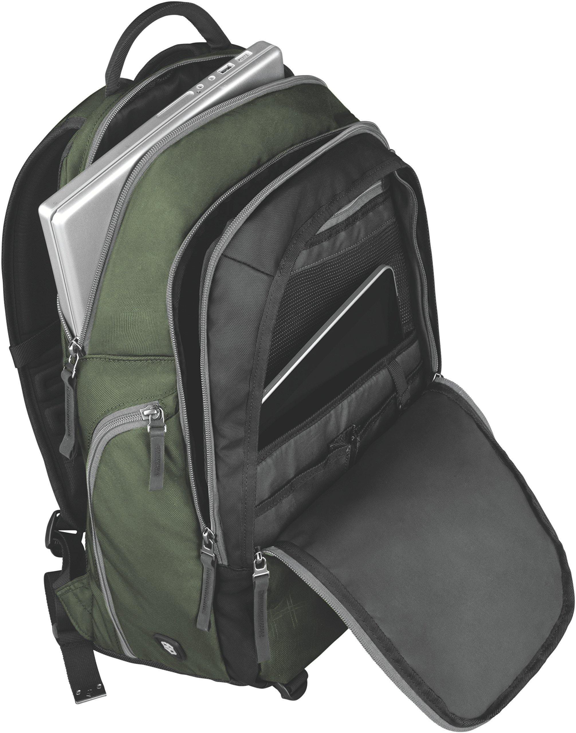 This ultra-spacious backpack is ready to carry all the gear you need for your next everyday adventure. Running through the streets in search of a taxi? No problem. Heading across the corridor for the next meeting? Its got you covered. Inside, youll find intelligently designed organization including a padded slot for your laptop, a spot for your tablet or eReader and all the storage compartments youll need. Outside, youll find durable Versatek fabric with an abrasion-resistant 1680D nylon base.