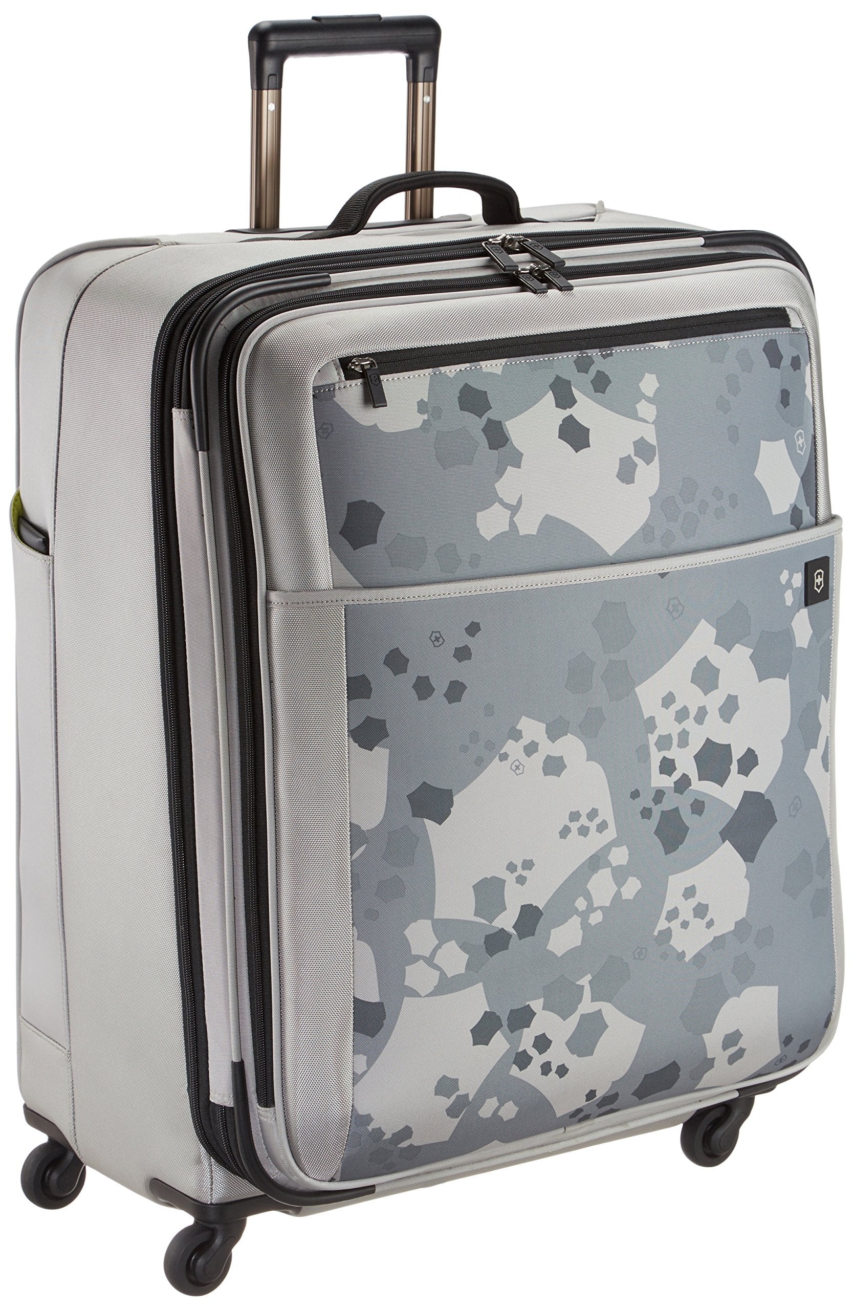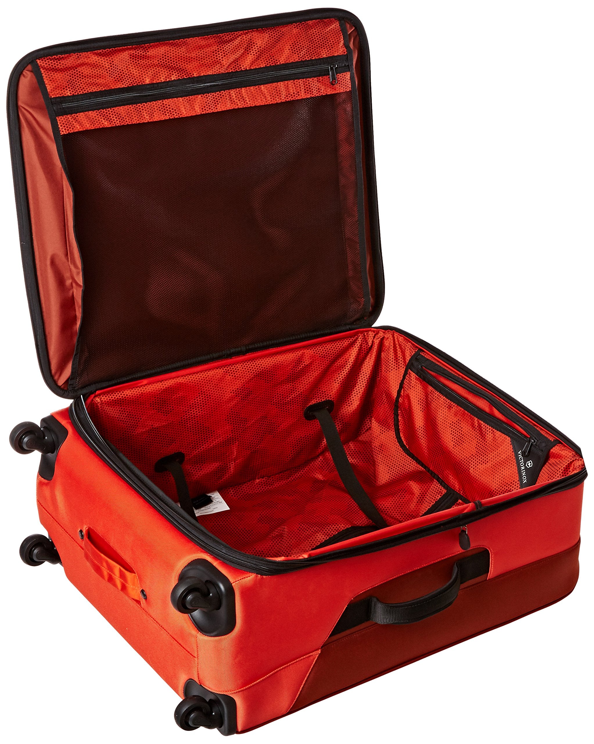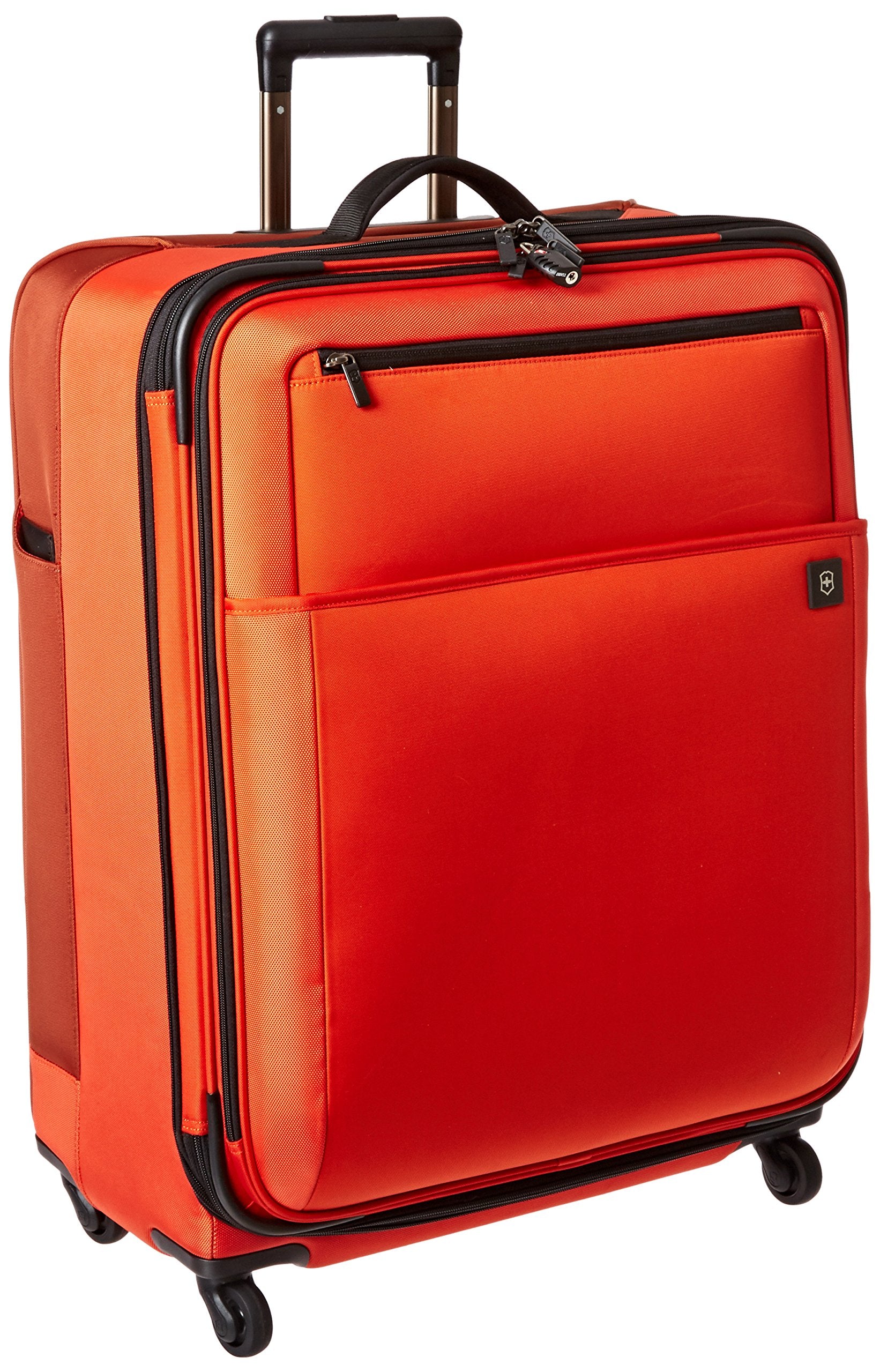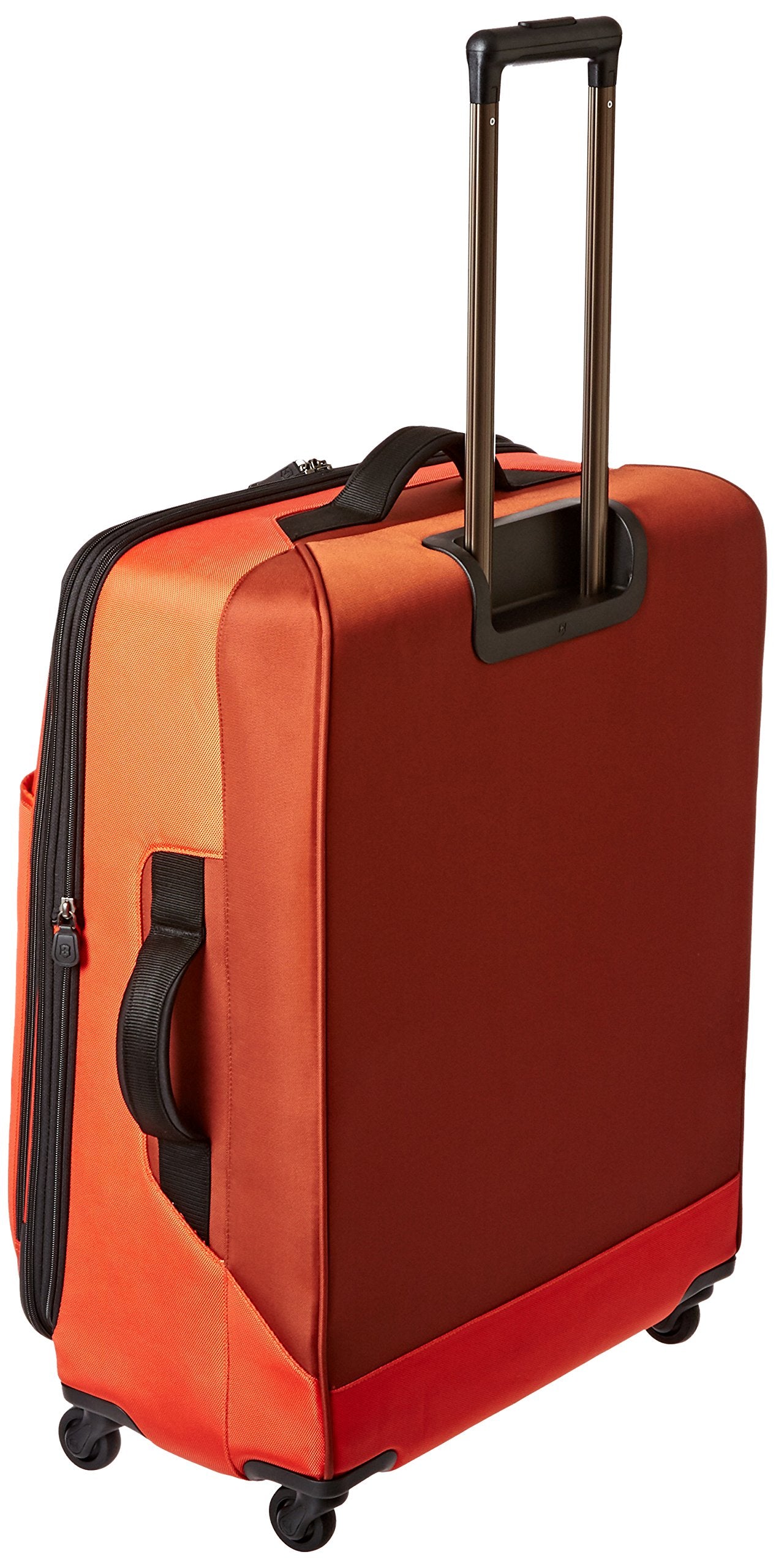 Whether packing for yourself or for a whole family, this spacious four-wheeledupright has ample capacity for your needs. Comfort grip, one-touch, dual-trolley aluminum handle system locks into two different positions, 41-inch and39-inch, to accommodate travelers of various heights. A four-wheel castersystem adds stability, providing 360-degree maneuverability and producing zeroweight-in-hand when rolling upright. Spacious main packing area expands 2-inchfor additional packing capacity and features lockable zipper sliders. Interiorfeatures a zippered hanging pocket, compression straps and a full-lengthzippered mesh pocket for storing toiletries and other small essentials. Topquick-access pocket conveniently holds tickets and other essentials. Top andside padded haul handles. Removable attach-a-bag strap secures an additionalbag to the front of the upright for consolidated travel. Lockable ykk racquetcoil zippers provide superior burst strength. Integrated slide-out id tag forsecurity and convenience.