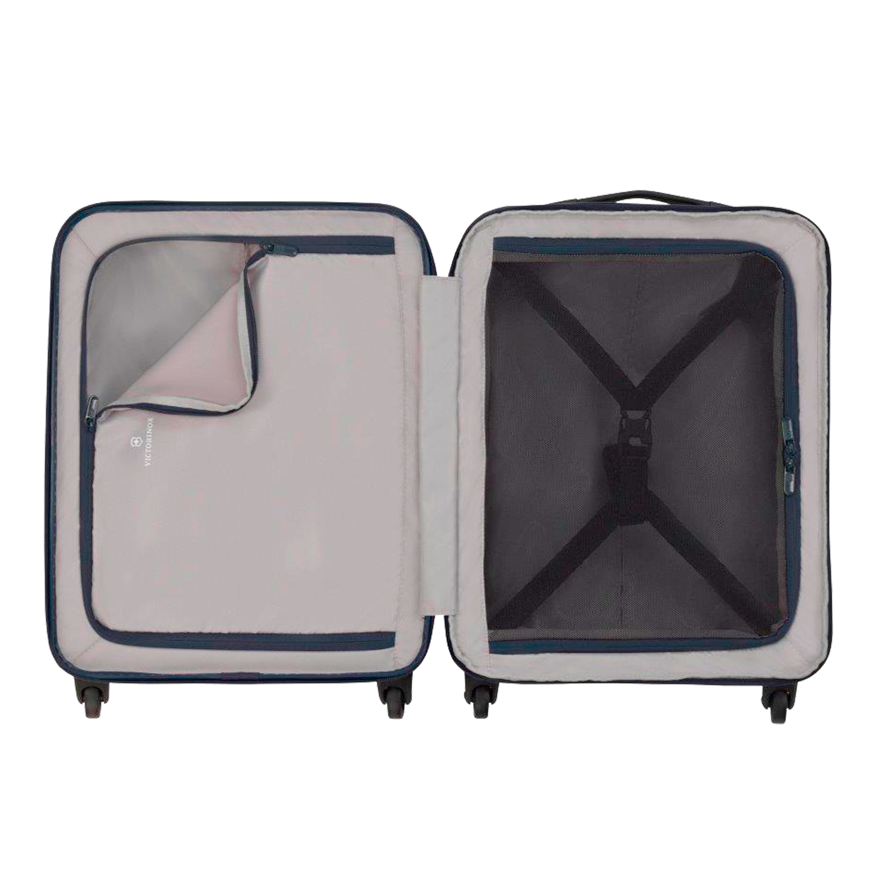 This lightweight 100% pure polycarbonate global carry-on easily glides down airplane aisles and provides added capacity when needed courtesy of a zippered expansion system. On the interior zippered dividers create two spacious packing compartments while an expansion system provides additional packing capacity when needed. Comfort grip, one-touch dual trolley handle locks into three positions to accommodate travelers of various heights. Premium 55mm Hinomoto wheels ensure a smooth roll. Y-shaped compression straps keep folded items secure and help reduce wrinkles. Integrated Travel Sentry Approved lock allows TSA screener to open the lock without destroying it, and relock it after inspection. Access Lock Combination Recovery Program allows you to register your lock combination on victorinox.com and recover if ever forgotten. Top haul handle for easy grabbing. Global 10-Year Limited Warranty