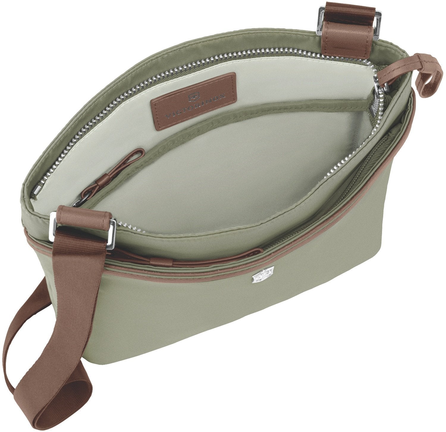 Keep everyday essentials close during your adventures with this over-the-shoulder day bag. Top zip closure. Main compartment includes micro-suede zippered valuables pocket great for jewelry. Organizational panel contains smartphone pocket, two pen loops large enough to hold writing utensils or a tube of lip gloss and another micro-suede zippered valuables pocket. Adjustable shoulder strap. Elegant silver hardware and leather touch points