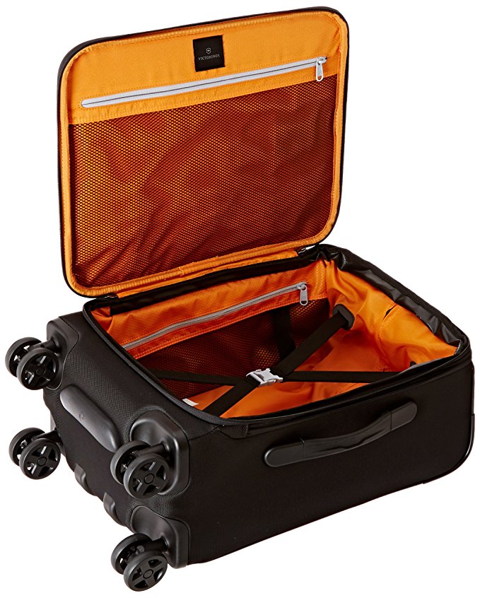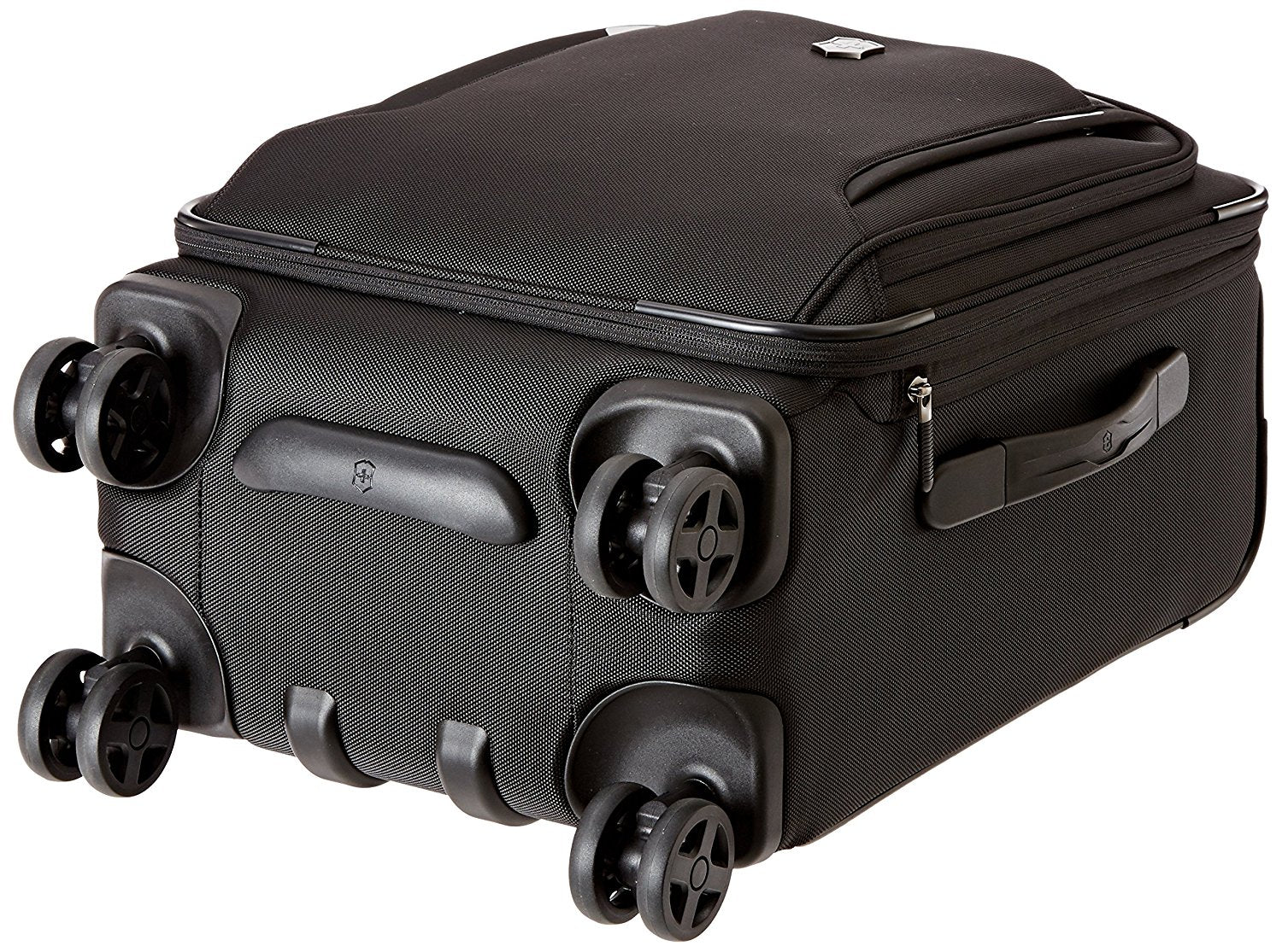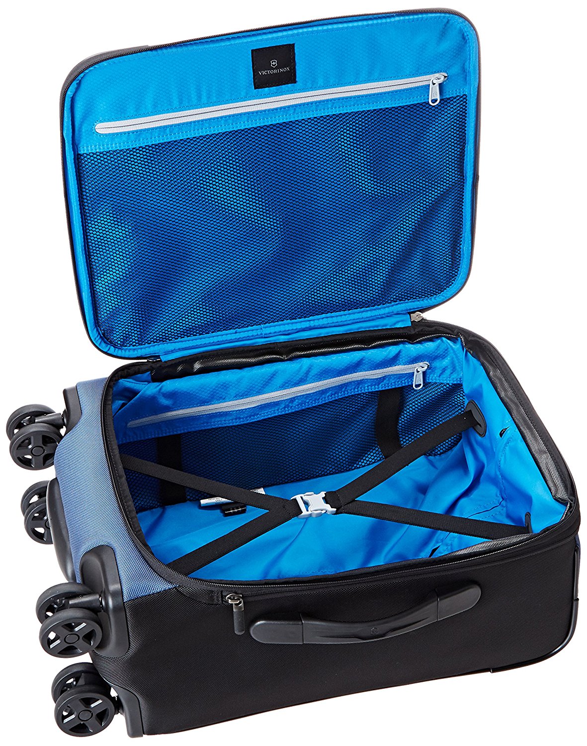 Lightweight carry-on cabin bag contains four packing solutions including the pack more divider which allows you to organize belongings and pack clothing flat and wrinkle-free. U-shaped front pocket holds up to a 15.6 inch 40 cm laptop. The intelligent pack more system consists of four packing solutions resulting in 16 possible packing configurations. Pack more system includes the pack more divider, X-shaped compression straps, a 2 inch 5 cm zippered expansion and a removable attach-a-bag strap. Pack more divider is adjustable in height and creates a flat packing surface for wrinkle-free transport of clothing. X-shaped compression straps secure and condense contents of bag. Removable attach-a-bag strap secures an additional bag to the front of the upright and holds up to 30 lbs. 13.6 kg. Ribbed, geluxe comfort grip dampens vibrations. Id tray slides into handle bezel for security and convenience. Rear skid plates protect the bag from abrasion. Lockable YKK racquet coil zippers. Travel sentry approved combination lock secures belongings and allows U.S. Airport security screeners to open the lock without destroying it and relock it after inspection. Access lock combination recovery program allows you to register your lock combination on victorinox.com and recover it if it is ever forgotten. Global lifetime plus limited warranty- for five years from the date of purchase this warranty covers functional damage caused by common carries such as airlines, taxis, trains and cruise ships, as well as defects in materials and workmanship. Should a defect or damage appear under normal used during the first five years of ownership, we will repair or replace your product as appropriate at our discretion. For years six and beyond the product is guaranteed to be free from defects in materials and workmanship. See victorinox.com for full warranty details.