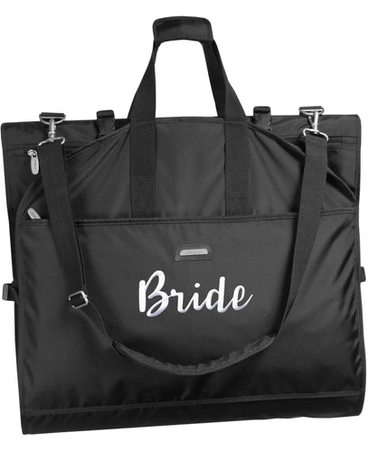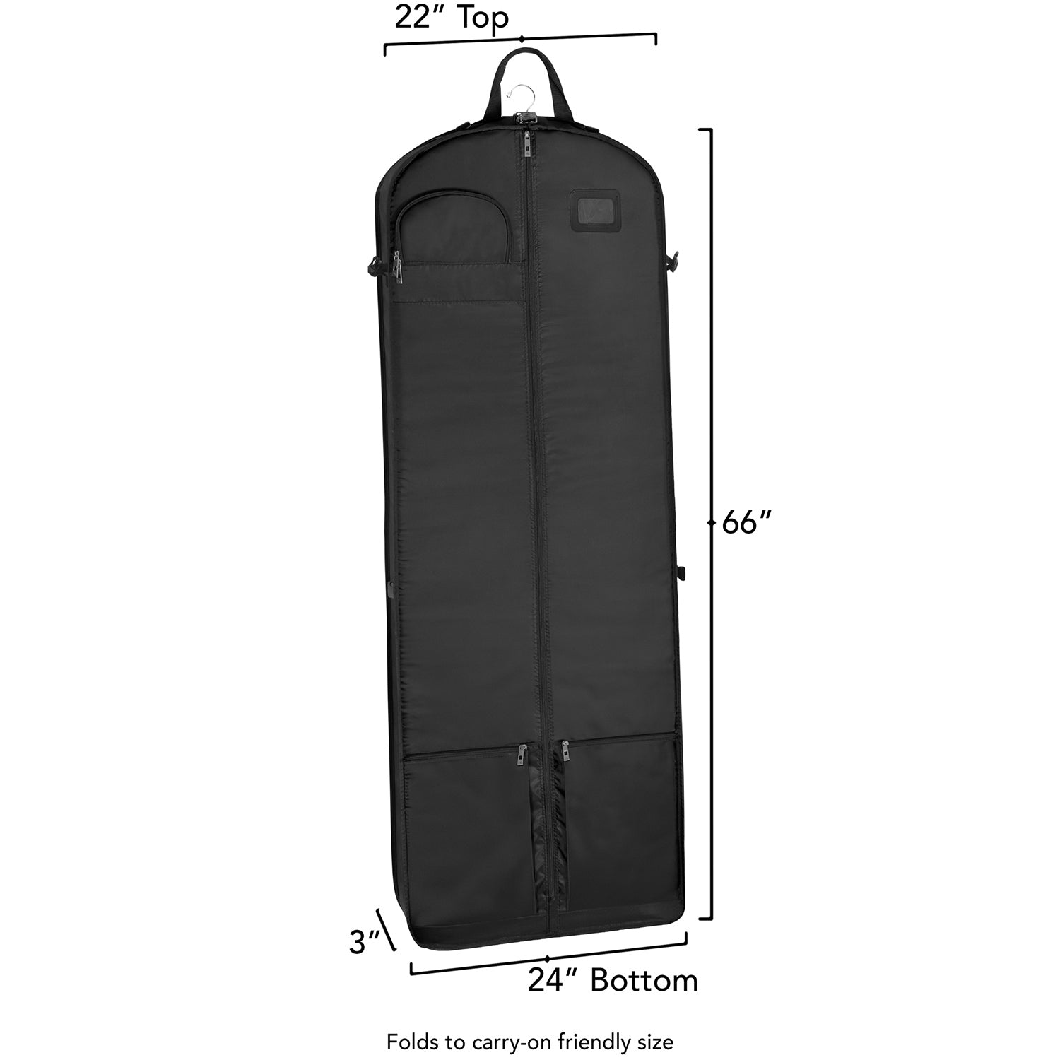 WallyBags 66” Premium Tri-Fold Carry On Destination Wedding Gown Travel Bag with multiple pockets and shoulder strap