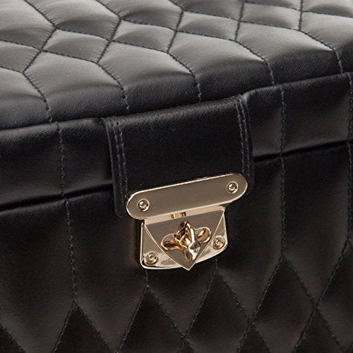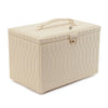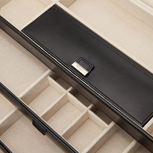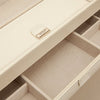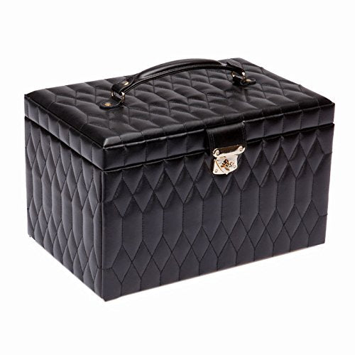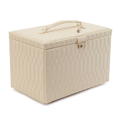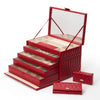 glass mirror, 43 jewelry compartments, 4 watch compartments, 4 ring rolls,