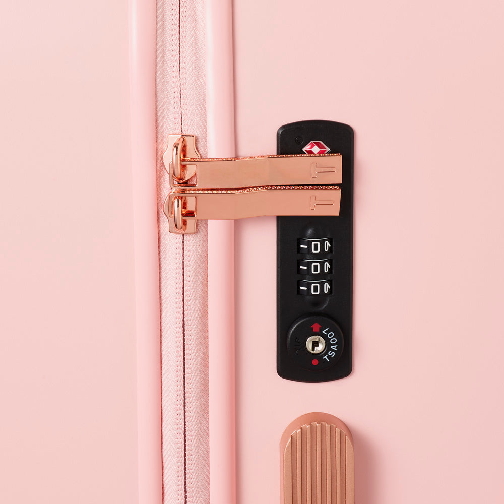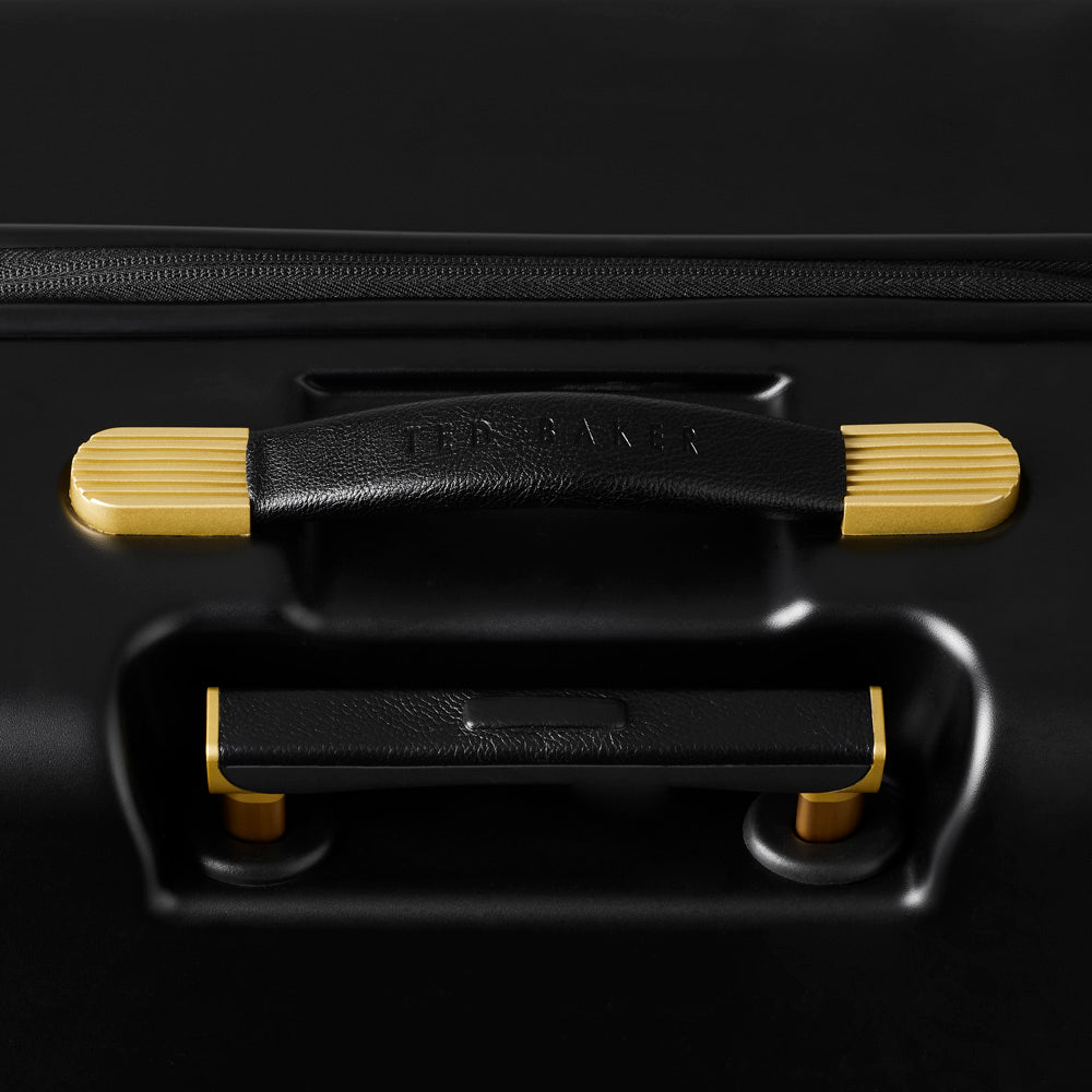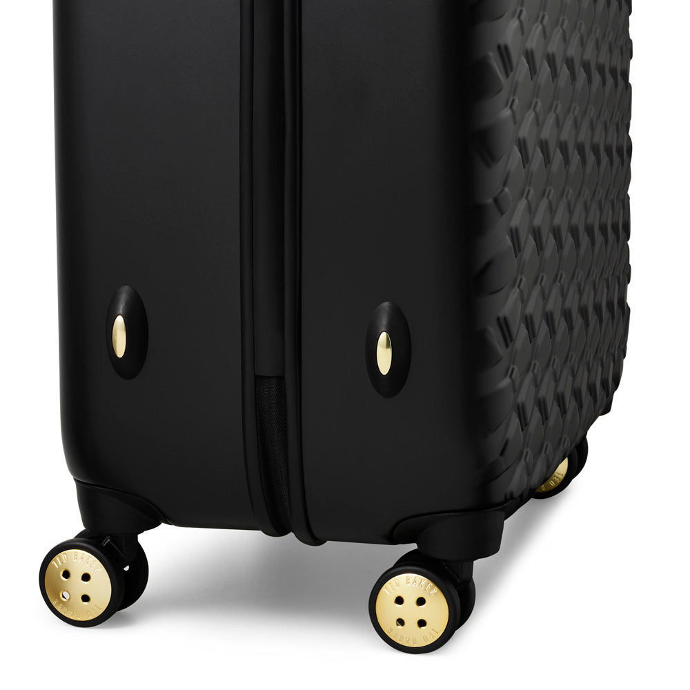 • Four smooth-rolling double wheels for 360 degree manoeuvrability. Full bespoke Ted Baker hardware in a gold finish.