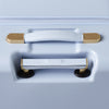 • Trademark branded button hubcaps. New streamlined design, lightweight trolley system in signature golden finish, with a hidden push button mechanism.