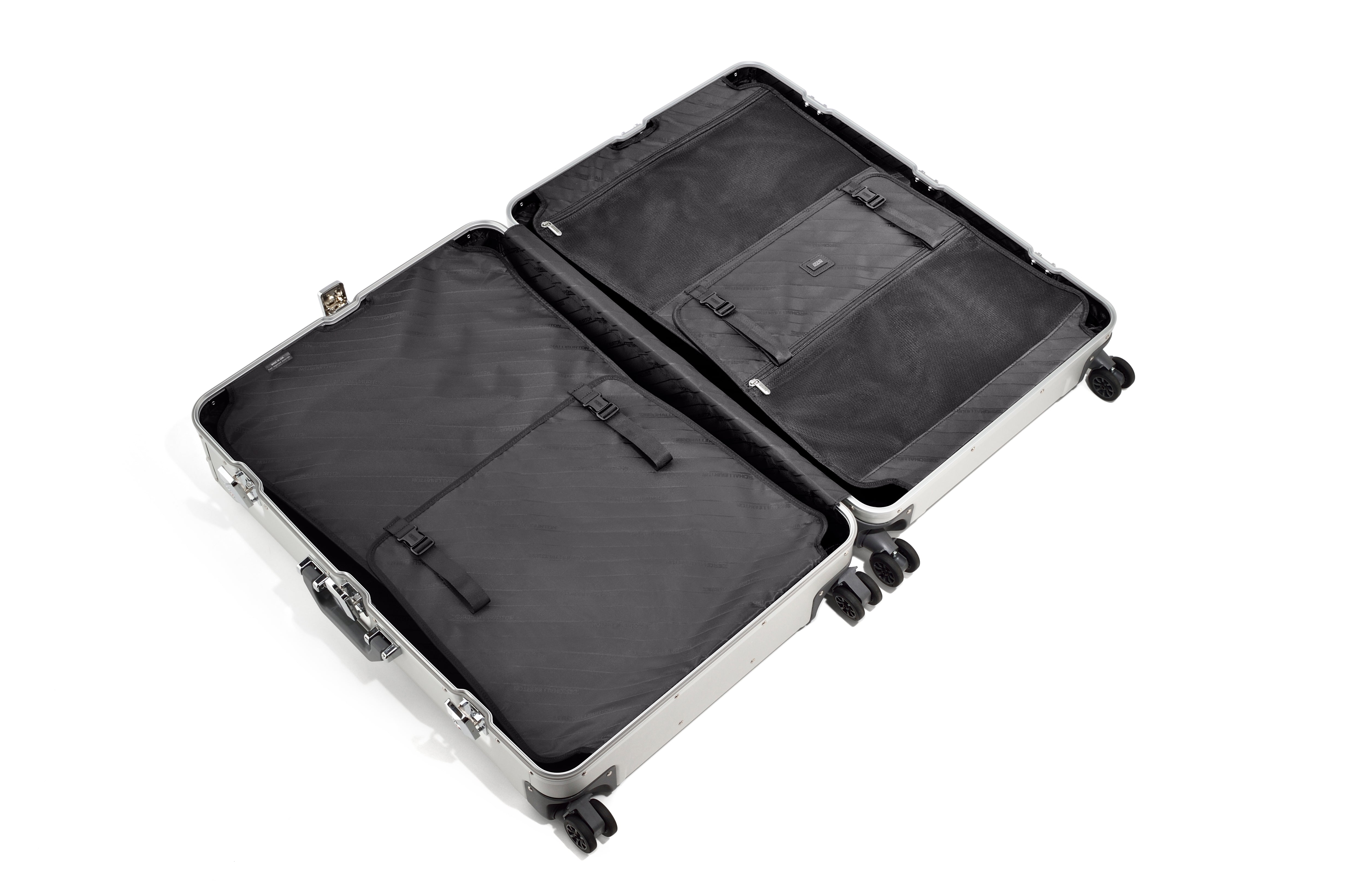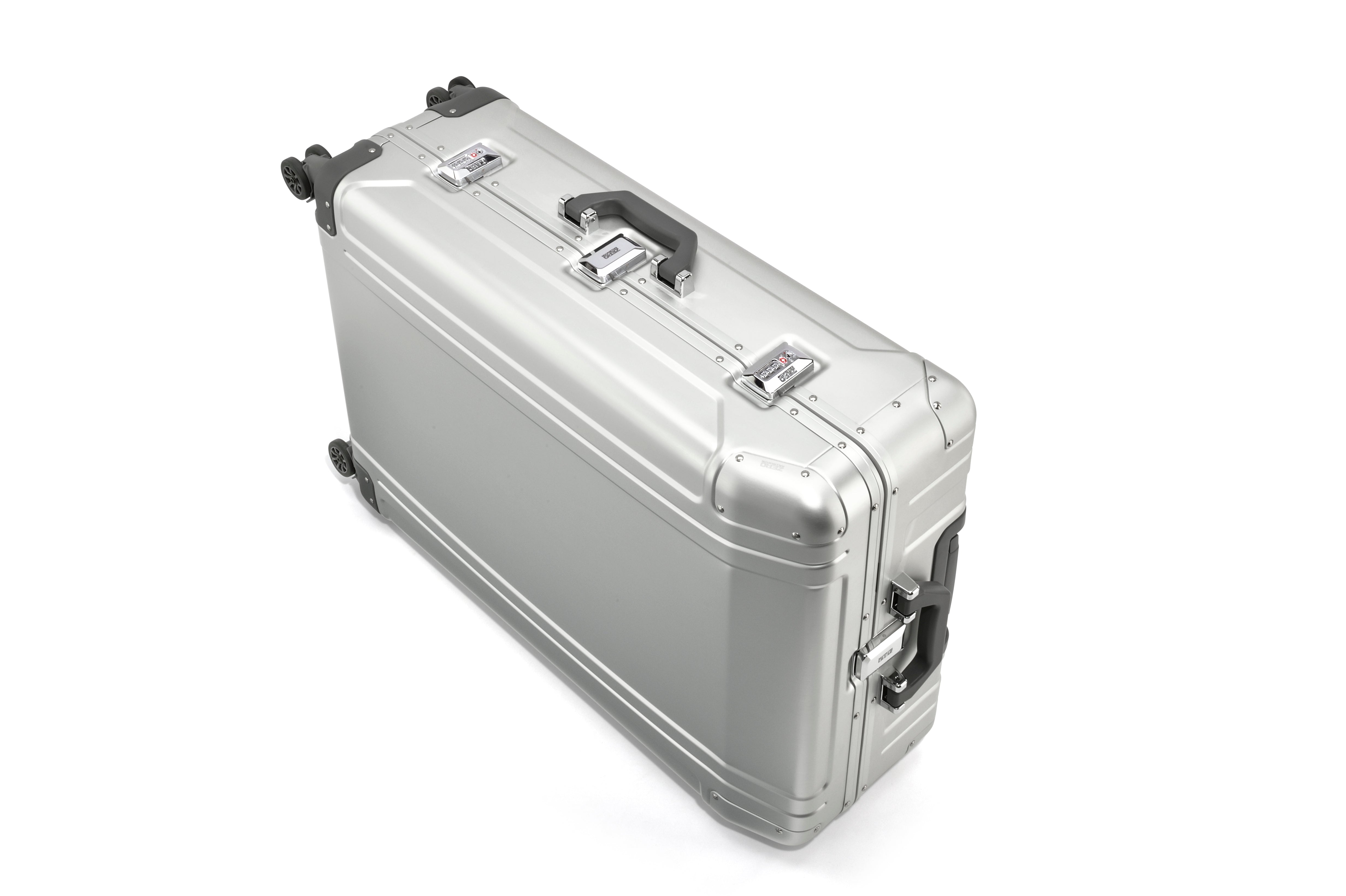 The Geo Aluminum 3.0 30" 4-Wheel Spinner Case has a flexible interior and two TSA-accepted draw-bolt latches for security.