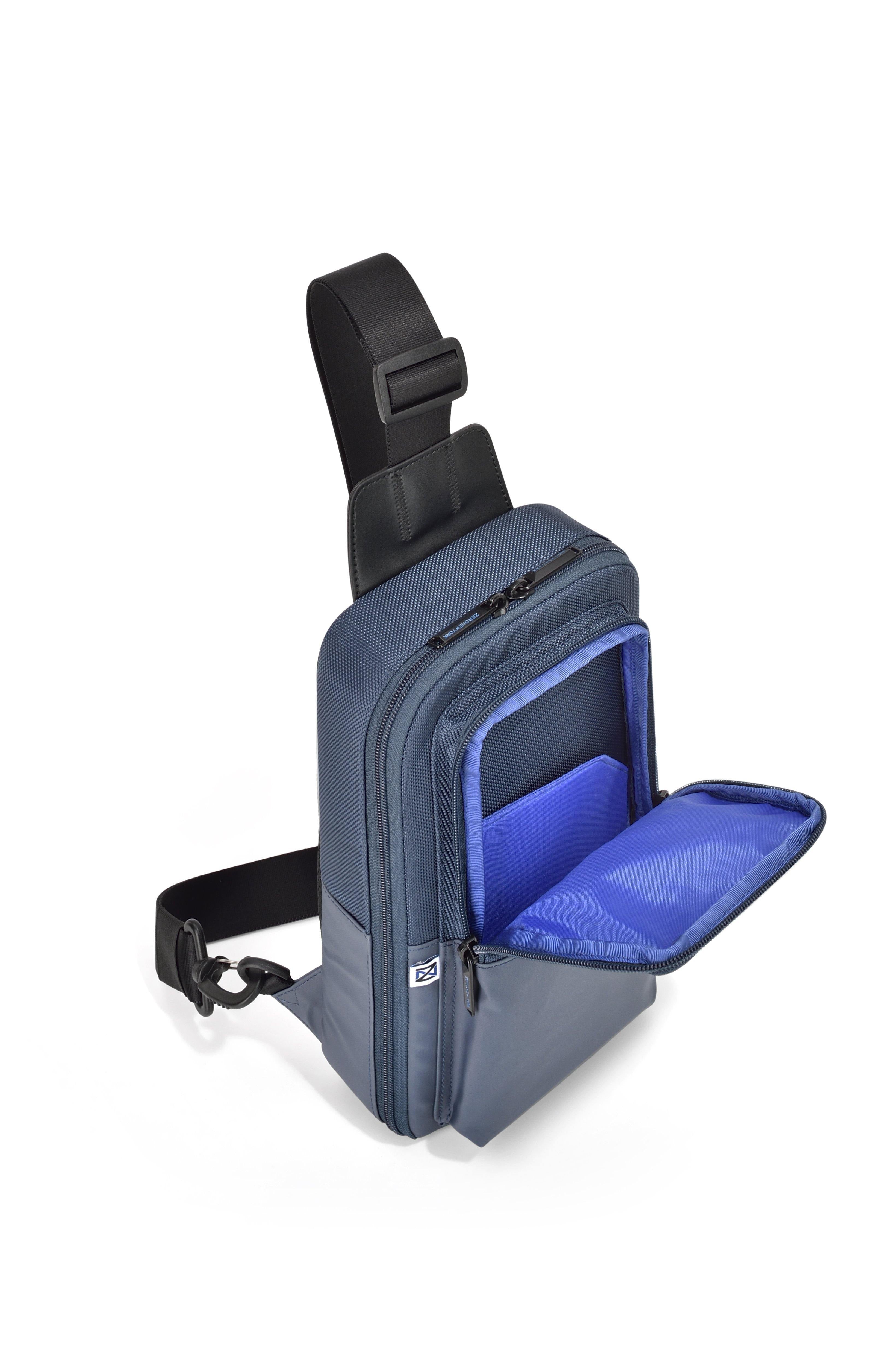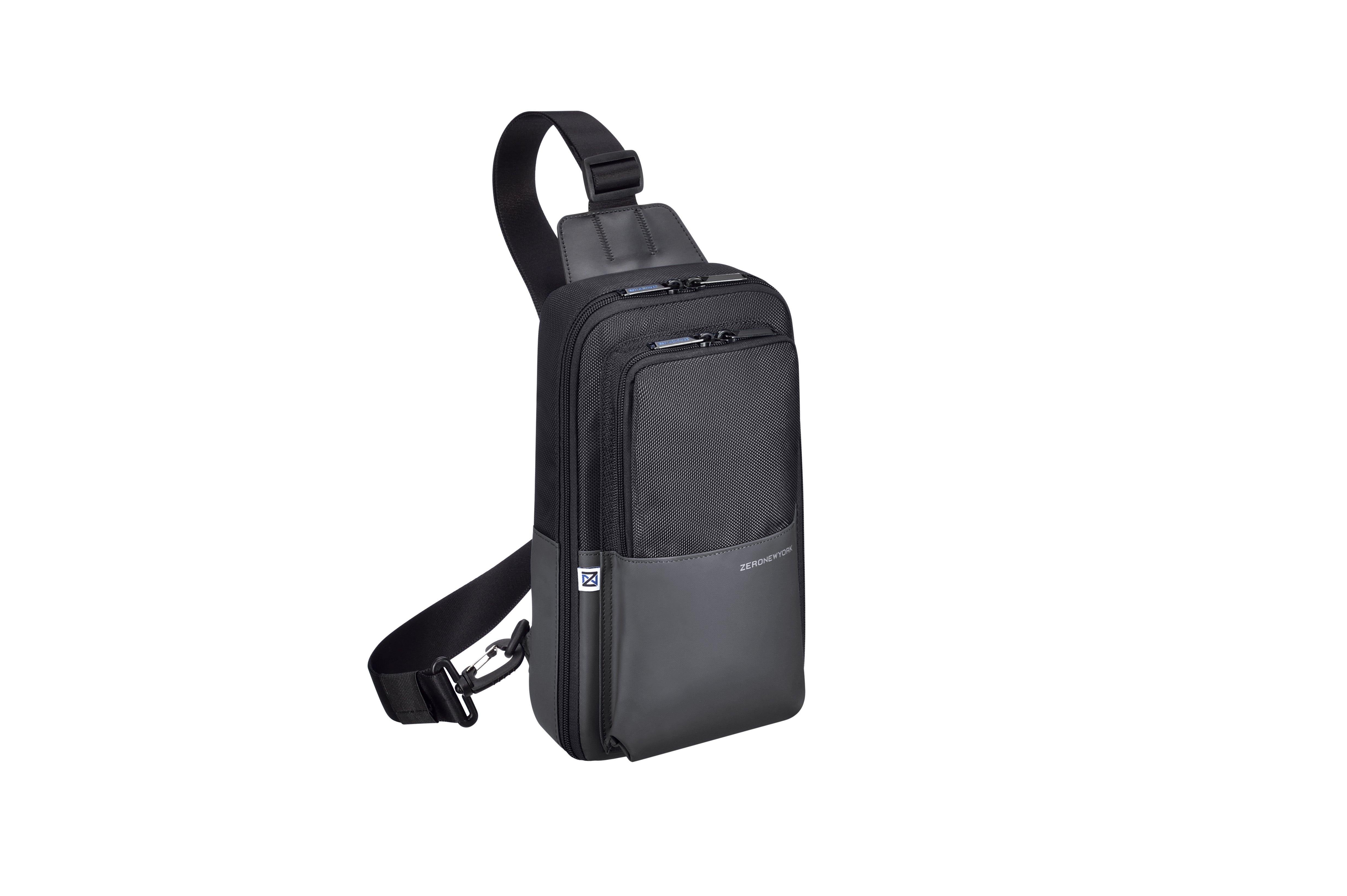 • Our sleek Sling Bag holds just what you need, includes a mesh back panel, a secure, large-capacity inside zippered main pocket, a front pocket with an easy access gusset, and a zipper pull engraved with the Zero Halliburton brand logo.