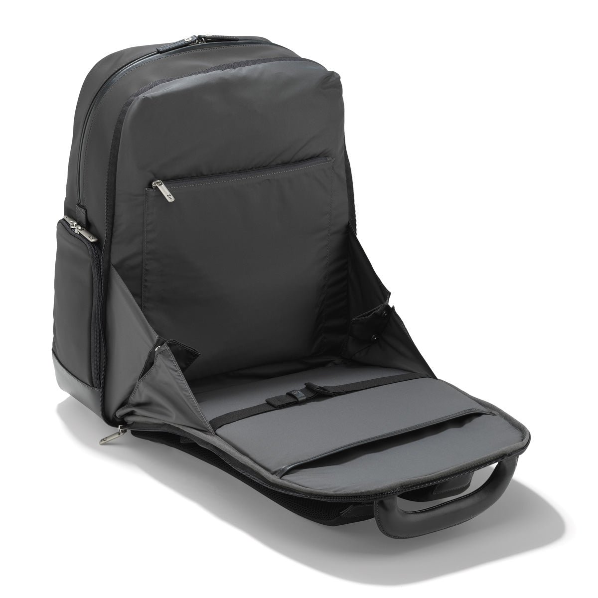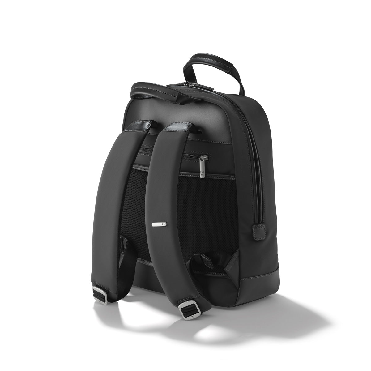 A sophisticated statement in a streamlined silhouette, the Small Nylon Backpack is the union of substance and style. Made from high-performance nylon tricot fabric, the supple exterior is backed by an interior structure that stands up without feeling stiff. Layers of padding create support and allow for equal distribution of weight something your back will appreciate when youre on the go. Utility pocket spaces abound, including ZHs signature double rib design that conceals two hidden pockets for discreet, effortless access to your keys, phone, wallet, or travel documents. Thoughtfully constructed, each detail of this sleek bag is created for a contemporary lifestyle.