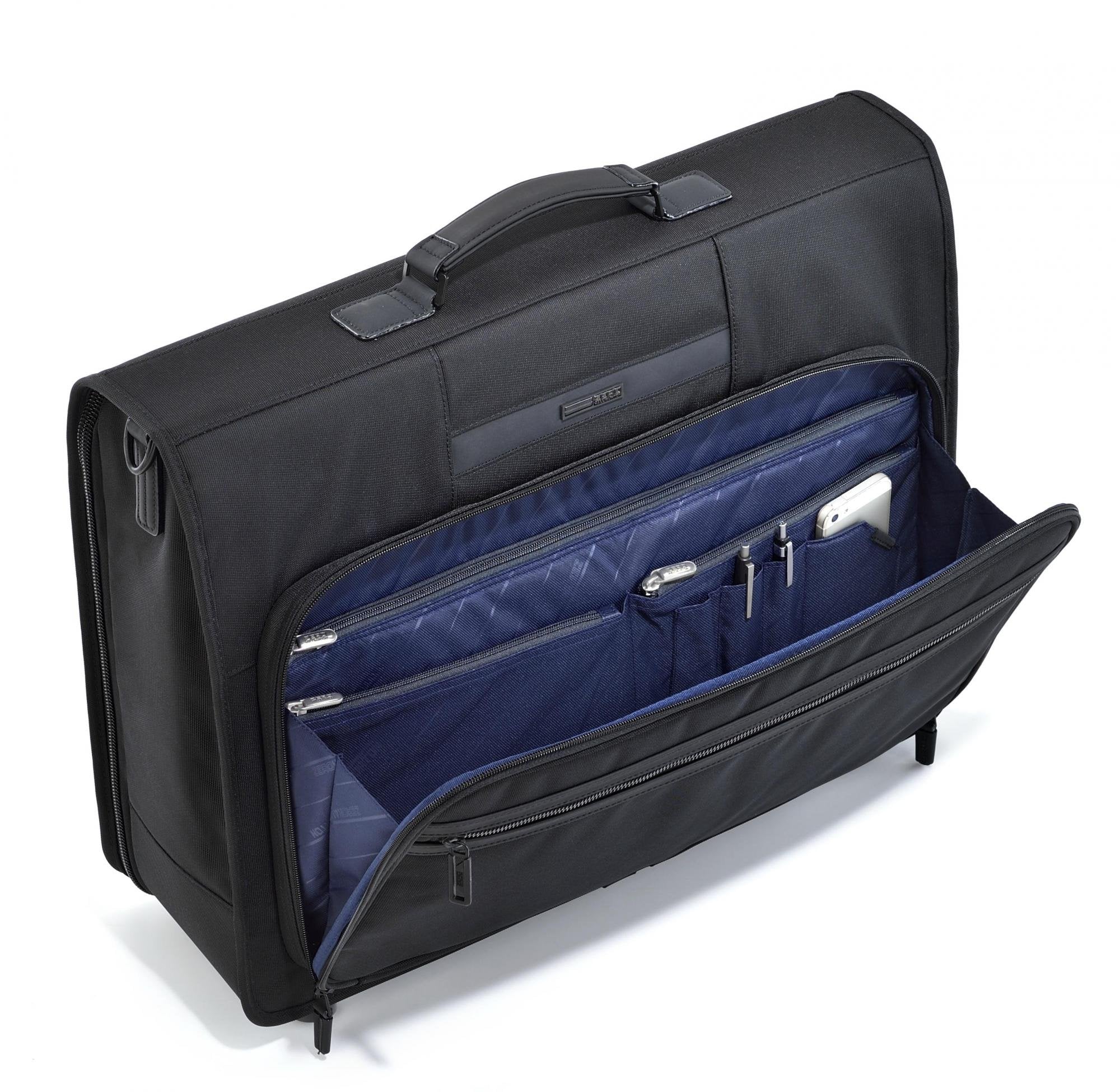 The Zest Collection features modern styling and superior organization for your daily business needs. // NEW from ZERO HALLIBURTON, the ZEST Deluxe Zip-Around Garment Bag is made of ultra-durable Cordura Nylon and features additional leather touch-points. Perfect for overnight and weekend travel, the Deluxe Zip-Around Garment Bag slips over the handle of our Wheeled Business Case, or it can be carried by its top handle or adjustable shoulder strap for easy and convenient transporting. Includes an extender panel for longer suits or dresses, two travel hangers, and two large exterior pockets and one interior pocket for exceptional packing and organization. // 3 Year Limited Lifetime Warranty.